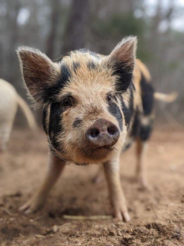 Bindi currently lives with a group of 18 pigs and is very easygoing. She is fairly sweet and calm, but like most pigs, will need some time to decompress in a new environment and get to know her new family. She has the potential to be such a loving, affectionate family member.