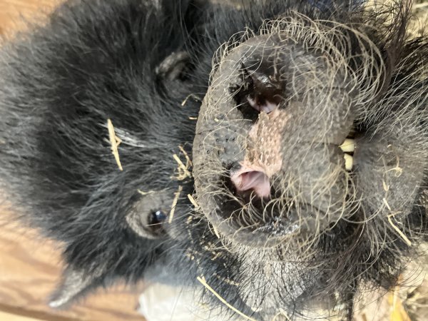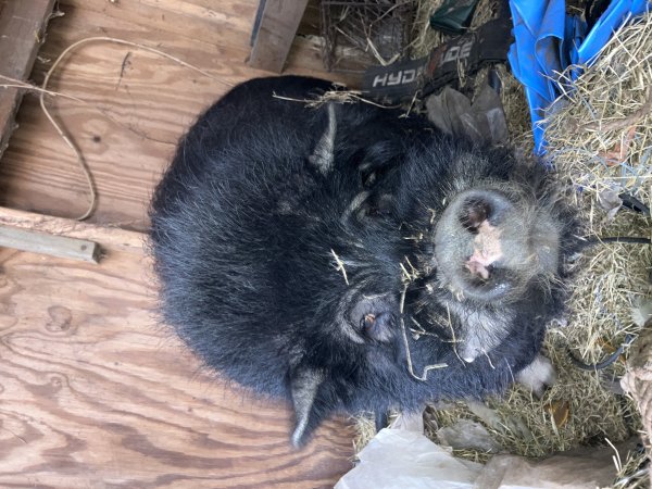 4/2/25 Still available! Introducing Clyde! He is good with people. He doesn’t bother any other animal unless he's eating or the other animal bothers him first. (Dogs and pigs should always be supervised and never left alone when together.) He steals other animals food. He can be very sweet when food isn't around. Clyde is a bossy and talkative boy who can be a bit of a bully. Feeding him separately from other animals is an easy way to help control food-related issues.