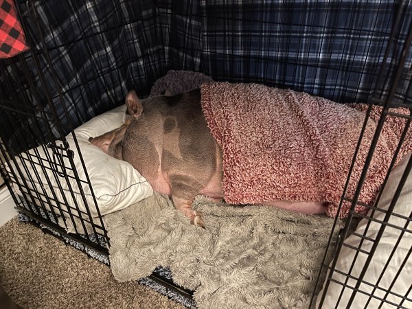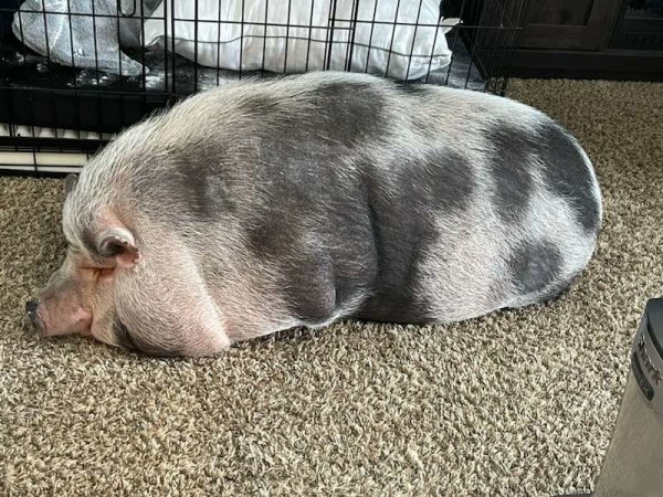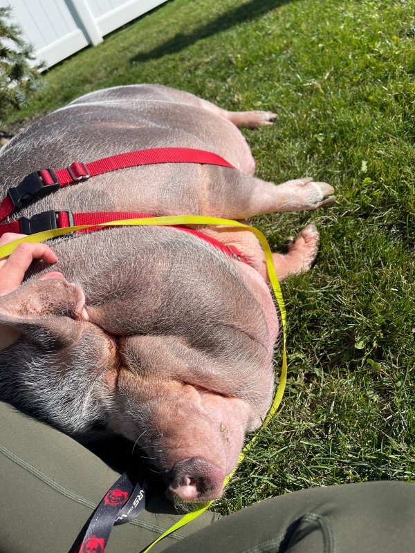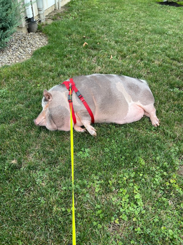 2/22/24 Still available! Dexter is a handsome housepig who enjoys his outside time. He is harness trained, crate trained, and housebroken. He knows sit, spin, and his name. He also responds to “in” to go into his crate, and “go” to move. Dexter has never been around children or other animals, so it's uncertain how he would react.