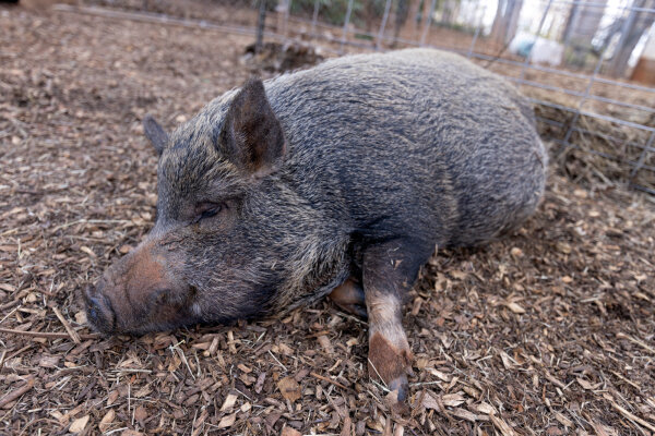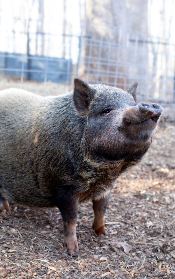 9/8/25: Still available! Ginger was one of 11 piglets who came into BSAS after being rescued from a horrendous hoarding case. They were all given herbs and spices names! Ginger has the most stunning soft and shiny coat with a blonde mohawk! He can be a little shy with new people initially, but once he warms up he gives very gentle boops and nudges asking for his ears to be scratched and a belly rub. He is currently living with two other pigs, (Basil and Elvis Pigsley), in a foster home in Cary, NC. Ginger is available to be adopted. Stop by to meet him today!