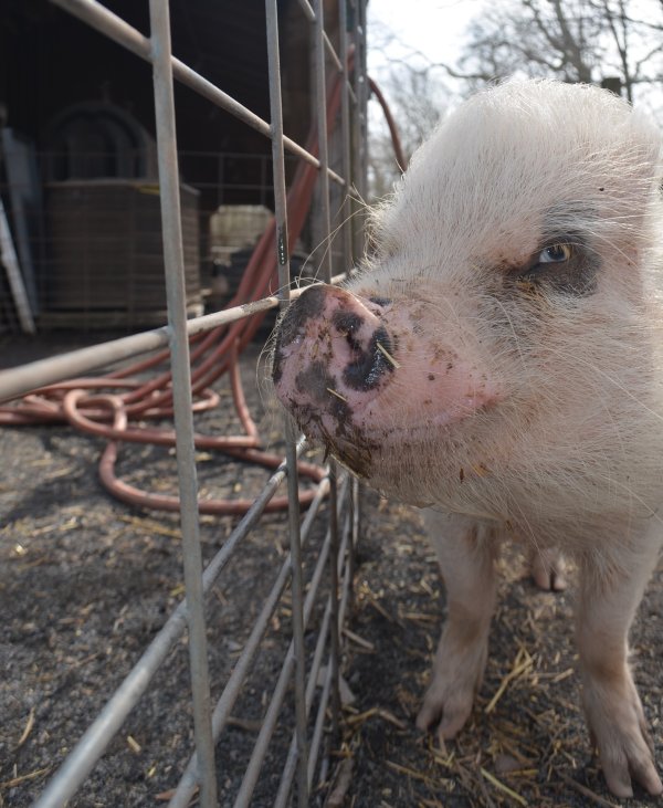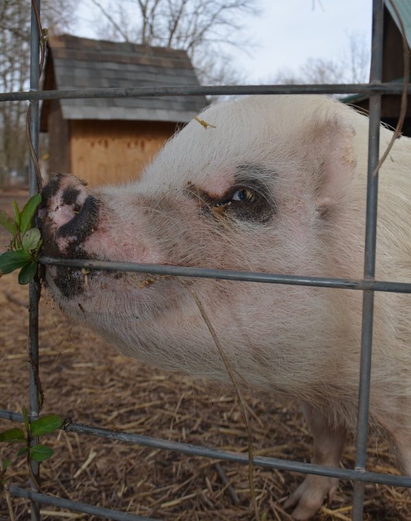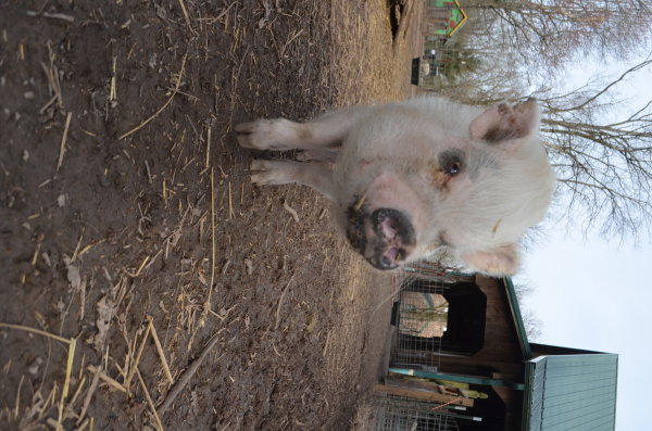 Lucy arrived at Ross Mill Farm after being with animal control. She has behavior issues that will be addressed during her stay at the farm. We are confident given her age and improper treatment in the past that with proper care her aggression with reduce drastically. Since arriving at the farm she was spayed vaccinated and microchipped. Her diet consists Champion of potbellied pig food twice a day in the morning and afternoon.