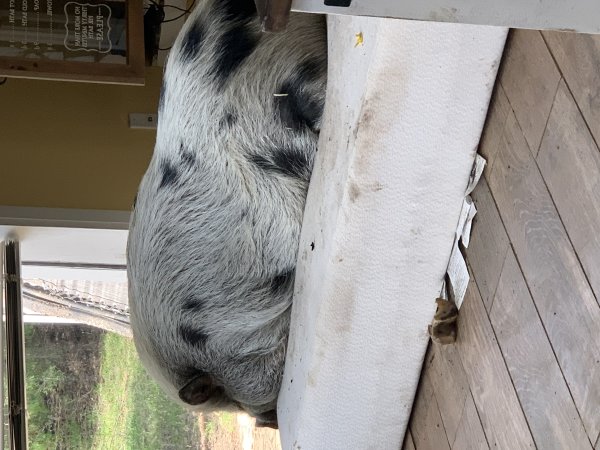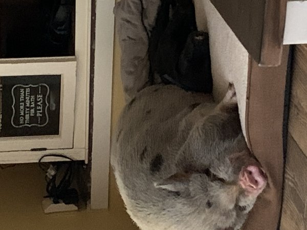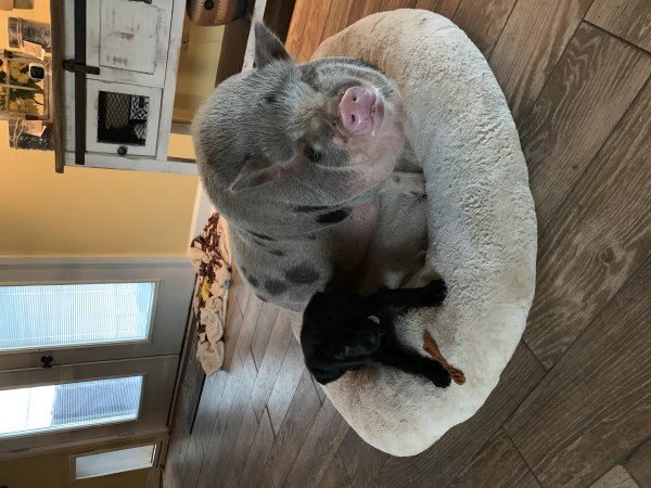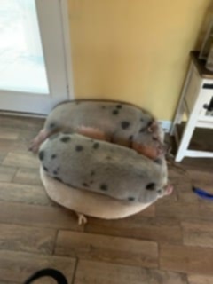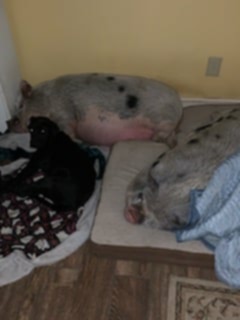 12/5/24 Still Available! Hank and Pepperoni Marie are two adorable house piggies in need of a new home due to disabilities making it too difficult to continue their care. They are both housebroken and go outside to potty. Both do well with other animals, although Marie takes a little longer to get used to dogs. (Dogs and pigs should always be supervised and never left alone when together.) Both know "sit".