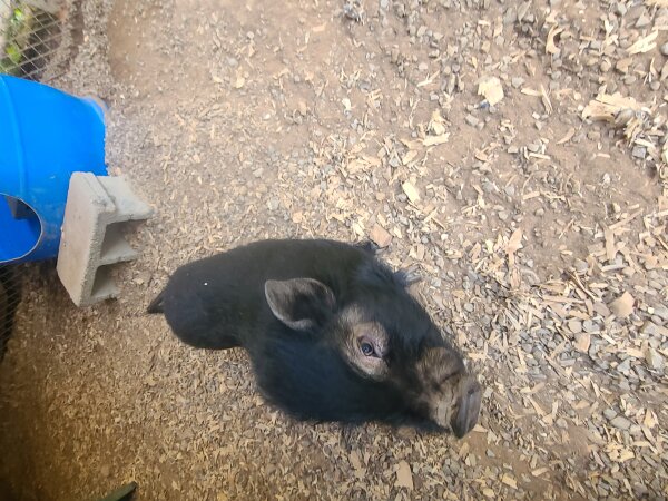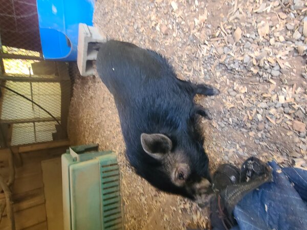 This listing is for Bubba Jay, the 6-month-old boy. (Fatty Patty is the 6 m/o girl.) The girl pigs are all a little more social & less shy than the boys, but all the pigs will warm up with more attention and care in the new homes.