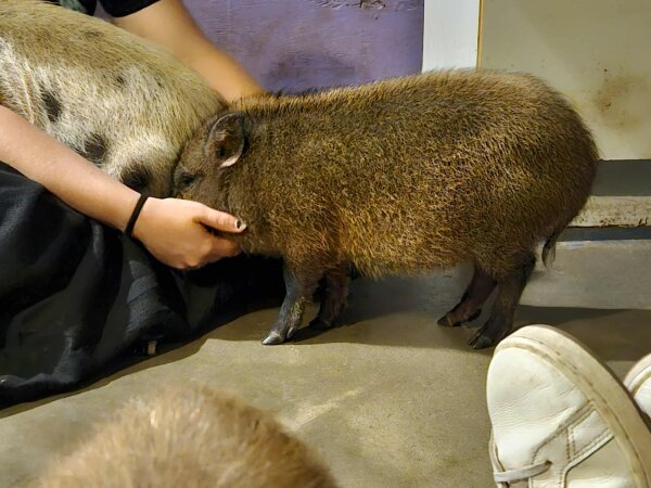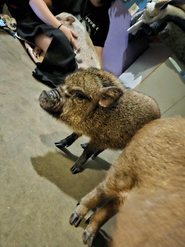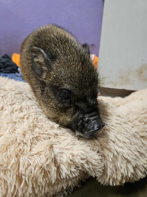8/12/25: Chickie, a piglet with chipmunk coloring, is the only piglet left from this group. She's spayed and ready for her forever home!