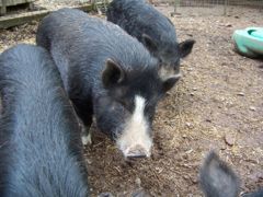 Livey is the mother of a litter of six brought to Ross Mill Farm July 2011. She is very outgoing and energetic loving to be outside. She will need to go to a good home with lots of running space and a warm place for her to sleep and get out of bad weather. Livey is also microchipped spayed wormed and is up to date on her shots. Livey is a medium to large sized pig.