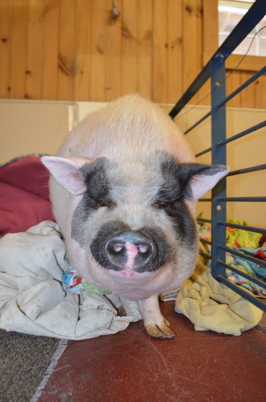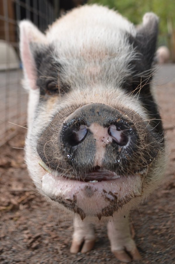 Louie is good pig with a big personality. In general, pigs often do not do well with transition and upheaval in their lives. Louie was a bit stressed when he first came to live at RMF and he really values stability, so his new family will need to have patience with him while he adjusts. Louie seems to prefer women over men. The staff will be able to tell you all about him. Louie is a pig who is full of energy and likes to explore. He would make a lovely companion for the right new home.