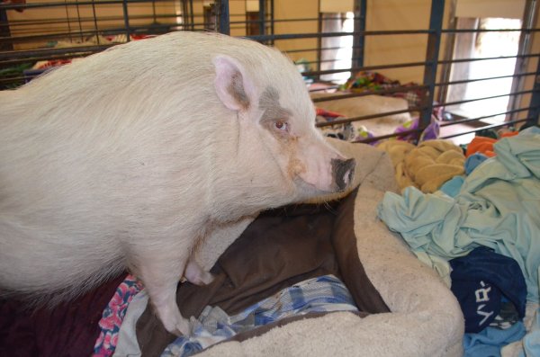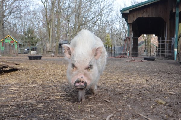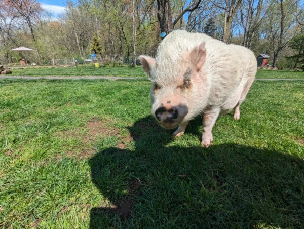 Lucy arrived at Ross Mill Farm after being with animal control. She has behavior issues that will be addressed during her stay at the farm. We are confident given her age and improper treatment in the past that with proper care her aggression with reduce drastically. Since arriving at the farm she was spayed vaccinated and microchipped. Her diet consists Champion of potbellied pig food twice a day in the morning and afternoon.