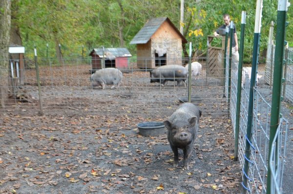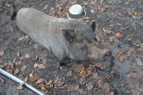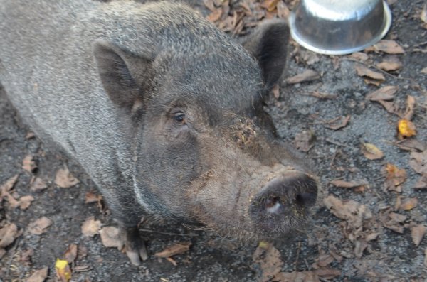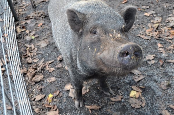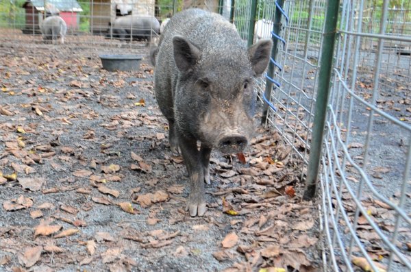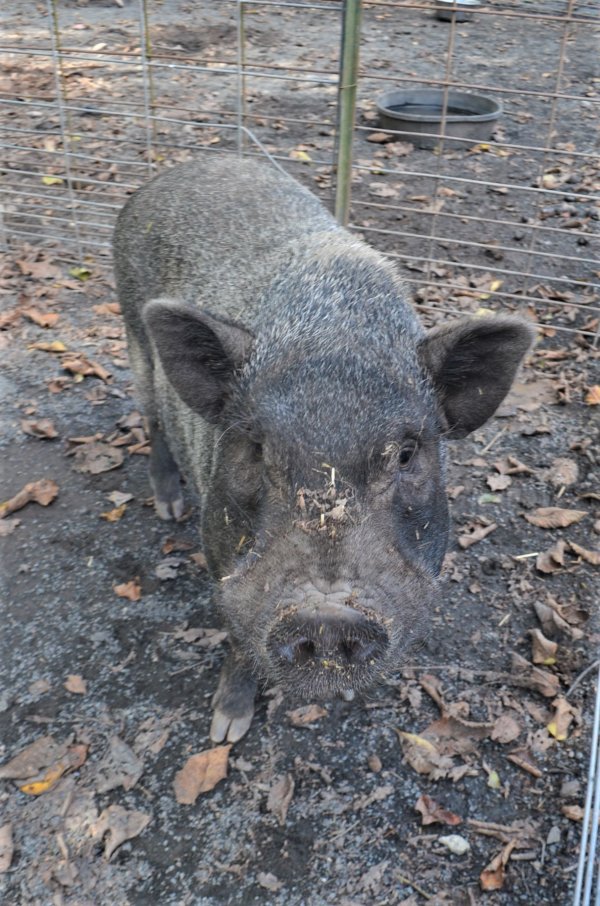 Meet Oliver! A rescue took him in due to behavior issues. He was housed with another pig (Beau), and they both were getting skinnier & skinnier. While at the other rescue, their behavior was so inappropriate the rescue was going to have them euthanized. The vet contacted Susan & asked if Ross Mill Farm would take them and work with them. They came to us to be separated (Beau was afraid of Oliver) and gain weight. He still has reservations and hasn't bitten any of us, but we are aware that he can. We are starting to work more with him now that he & Beau are in better health than when they arrived. He's a very handsome boy! He should go to someone who has pig experience and can continue to work with him on trusting people and his behavior. Beau's come leaps and bounds since arriving at RMF, and Oliver will, too!