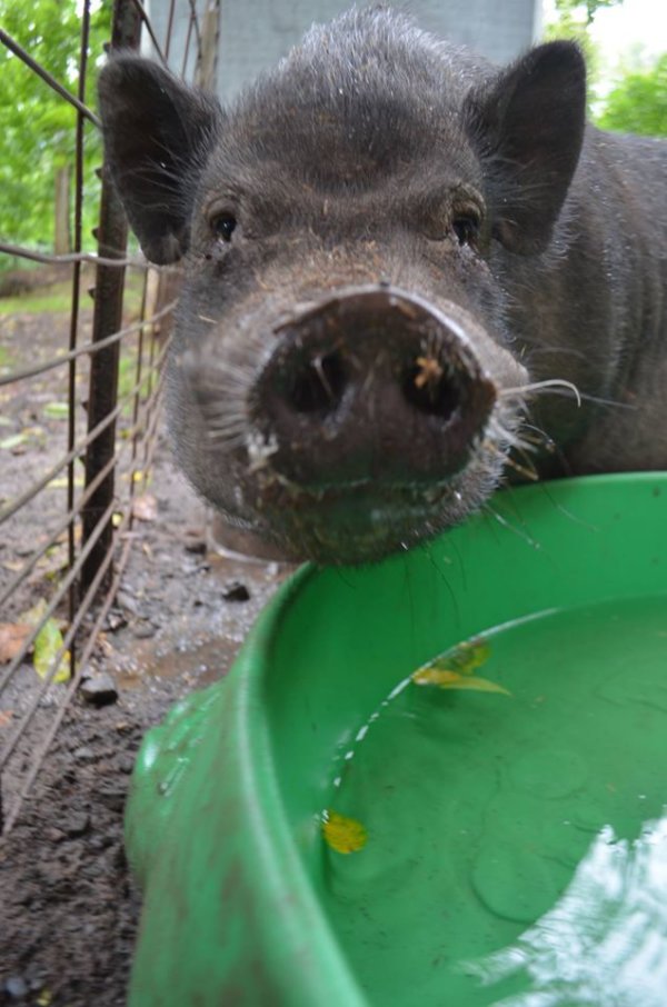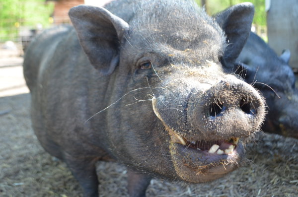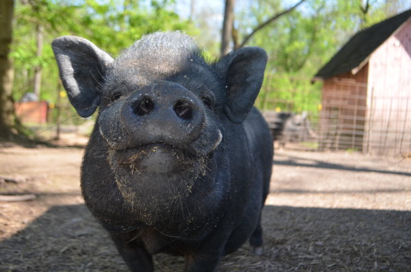 Paul is one of a litter of five that recently arrived at Ross Mill Farm. Their mother was rescued unaware she was pregnant until six little piggies popped out. All five brothers came to the farm while the sister remained with her mother as a companion. They are all quite friendly but still a bit shy. They were born November 25 2014 and neutered in June. They are up to date on their vaccines and microchipped. They have been outdoors their whole lives but could most likely acclimate to an indoor environment. At their previous home they were around a 14 year old girl they did well with along with horses, lambs, chickens, cats, and dogs. Paul is a metium sized pig.