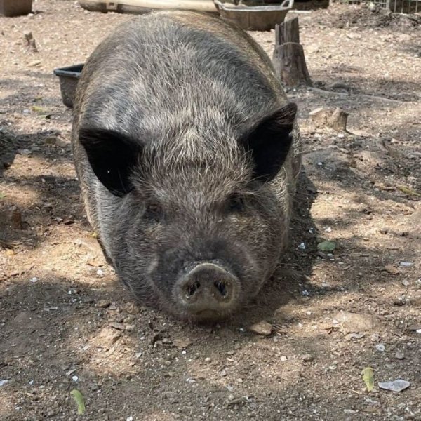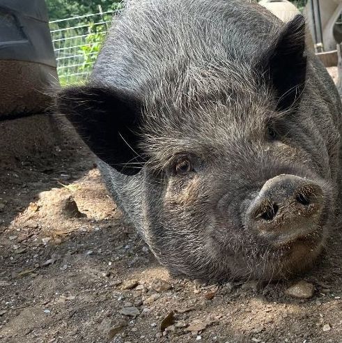 We took in Peter along with 23 other pigs from a rescue that was forced to close and rehome their animals. Peter has been waiting over a year for his forever home. We do not know about his backstory, where he came from, or what kind of life he had before coming to us. We do know is that since being in our care he is a very nice pig who loves livin' the pig life. He is neutered, microchipped, dewormed, and vaccinated. Like most pigs, Peter takes a bit of time to warm up to strangers but is very food motivated and that helps with winning him over.