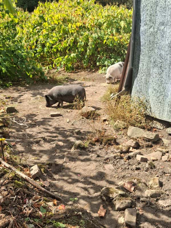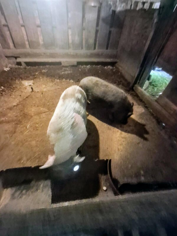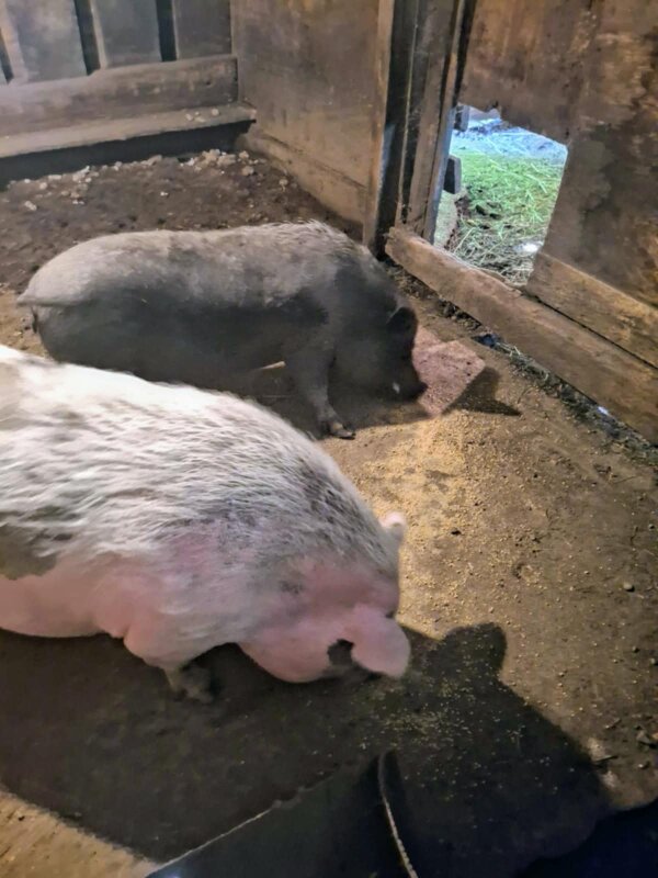 Petunia (pink) & Trixie (black) are a lovely pair of outdoor piggies in need of a new home that has more time & attention for them.