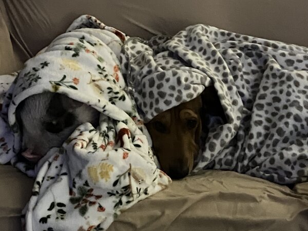 Her mom said: She loves to snuggle or bury herself under covers. Every night she lays with her head on my chest to watch a couple shows. She gladly goes to bed a 9:00 and sleeps under her bed. She is a rooter, so enjoys making holes with our dog or diving into a rooting box. Oatmeal is a favorite for rooting in the house. Zoomies are the cutest whether they are inside or out. She barks very time she gets to the end of the hall. She is very active and a bit bossy but overall a sweet girl.