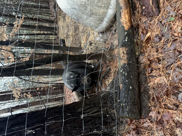 Truffles: He is skittish, but friendly. He likes to hang out with you when you go in his fence, but doesn't want to be pet. He is sweet natured.