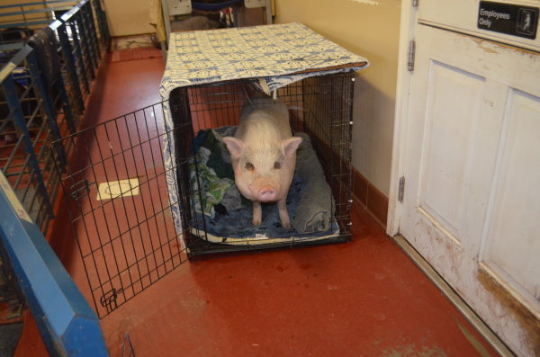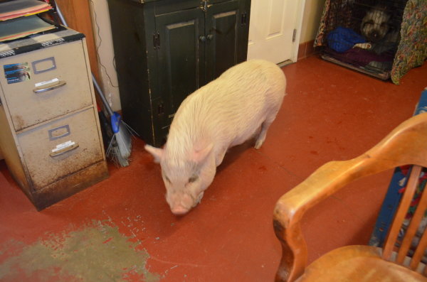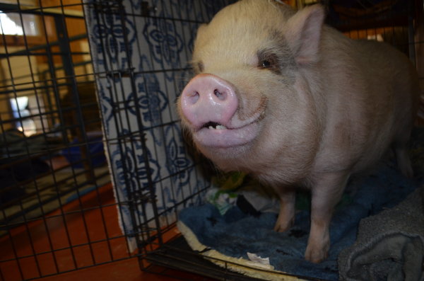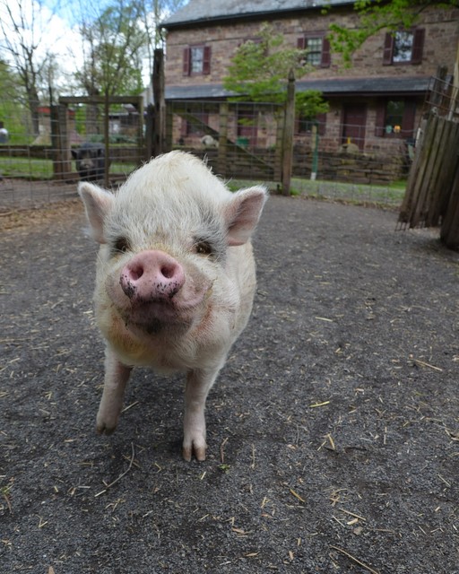 Piggy is a young neutered potbelly. He loves people and is a happy-go-lucky little guy. He came to us at Ross Mill Farm as a boarder but ended up needing a new forever home. This little man is used to sleeping inside but loves to be out during warm weather. He digs and roots a bit but prefers just to lounge in the grass. Piggy is a beautiful little man who is young enough to learn how to be good around kids. Right now he just doesn't have much experience with them. He is great with other animals though. He lived with a couple of dogs and a cat and did wonderfully with them all. He is a medium sized pig.
