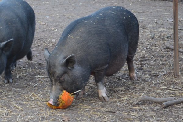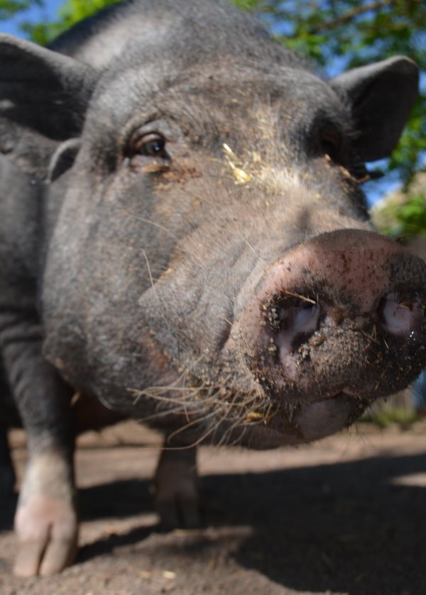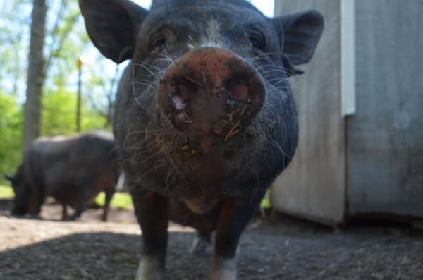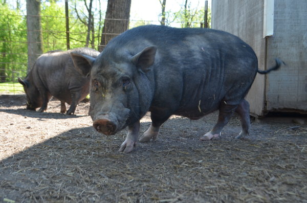 Pipsqueak is one of a litter of five that recently arrived at Ross Mill Farm. Their mother was rescued unaware she was pregnant until six little piggies popped out. All five brothers came to the farm while the sister remained with her mother as a companion. They are all quite friendly but still a bit shy. They were born November 25 2014 and neutered in June. They are up to date on their vaccines and microchipped. They have been outdoors their whole lives but could most likely acclimate to an indoor environment. They are medium sized pigs.