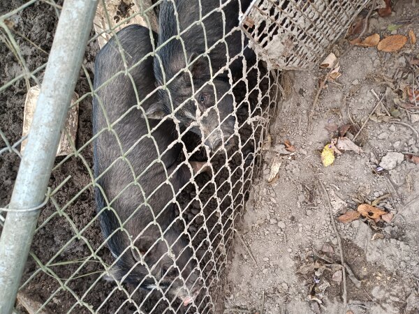 3/31/25 Still available and in need of homes. The males & females are separated. A group of four pigs were rescued about 4 years ago from a bad situation. The rescuer was told they were all female... but that was not quite true! There was one boy in the mix, and unfortunately one of the girls got pregnant before they were separated. A few months later, a small litter was born and there are now 7 pigs in need of homes. They are all friendly and sweet. The entire group enjoys human interactions and being around people.