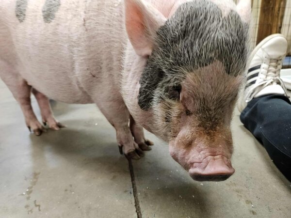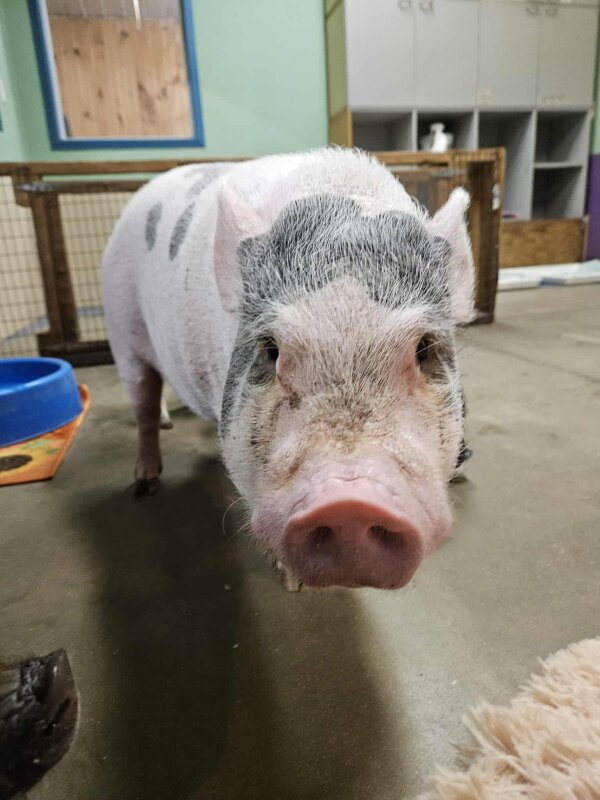 Riri was the apple of her dad's eye, but he had to board her and after a while, he ghosted. She's a doll & an absolute sweetheart who deserves to spend her days cuddling with a loving family. She's a great pig! Riri is currently living in the nursery with the babies.