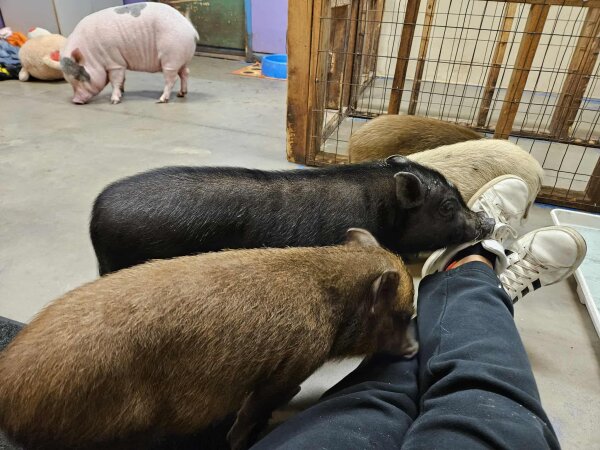 If you are interested in adopting, please complete the application and mention the name, city, and state of the pig(s) you're interested in: https://www.pigplacementnetwork.org/online-adoption-application/