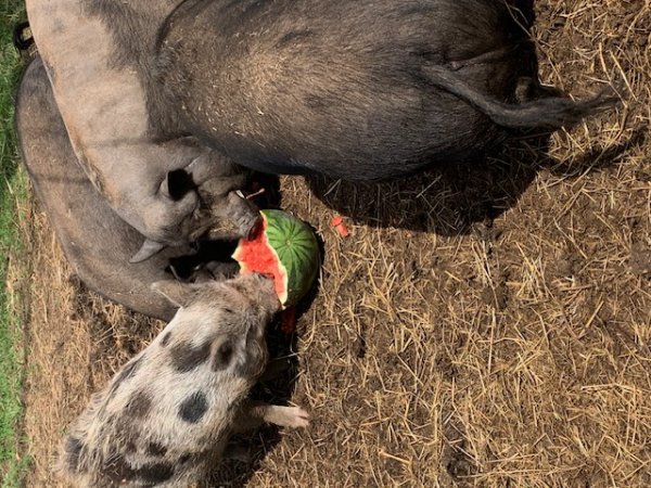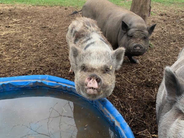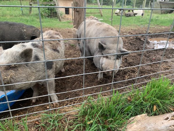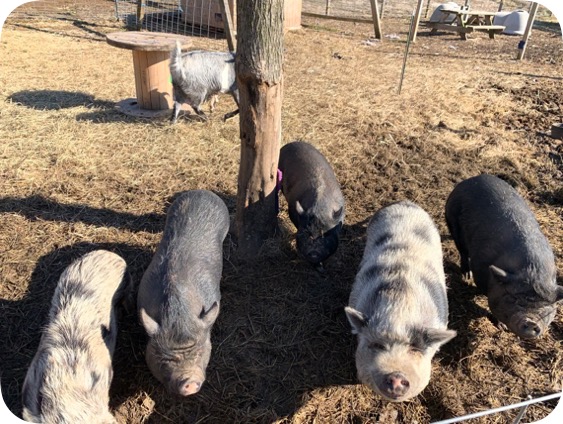 3/26/25 Still available! Sandy, Danny, Rizzo, Frankie, and Danny Dee are a small family unit in need of a home. It is preferred to keep everyone together. Sandy and Big Danny are the parents. Frankie & Danny Dee are the sons, and Rizzo is the daughter. The parents came to the family with a surprise pregnancy. They all do very well with other animals and live on a farm with dogs, cats, horses, & donkeys. (Dogs and pigs should always be supervised and never left alone when together.) The mother Sandy and her offspring Danny Dee are exceptionally friendly, have been inside house pigs, and were housebroken. Sandy and Danny Dee can sit, roll over and play dead. The other three have always been outside pigs. Two (Frankie & Rizzo) are reluctant to be petted and Danny (male father pig) is friendly but shy.