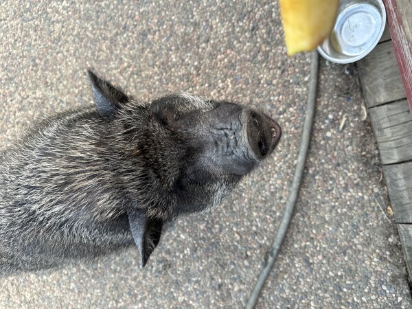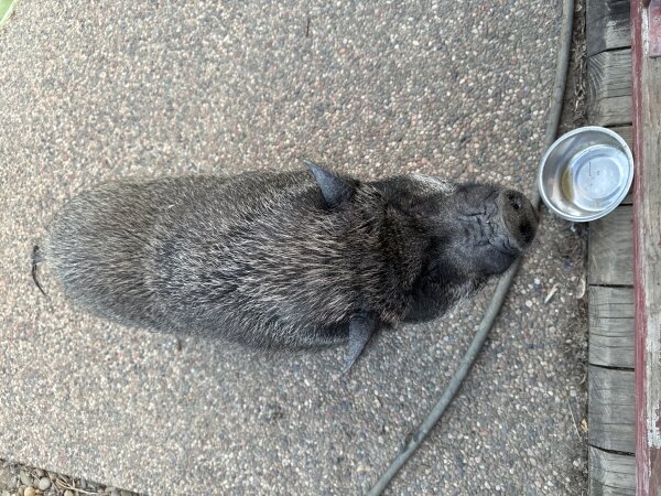 7/23/25 Still available! He is a neutered male. Meet Sonic! He's sweet and loves pets, belly rubs, and scratches behind his ears. He gets the zoomies when the family plays soccer in the yard. He's never had any issues with kids, and the child in the home was 4 when they got Sonic. He has been around dogs and isn't particularly fond of them - he's not bad with them, but not exactly good either. (Dogs and pigs should always be supervised and never left alone when together.) Sonic is an outside pig who lives in the backyard and is crate trained.