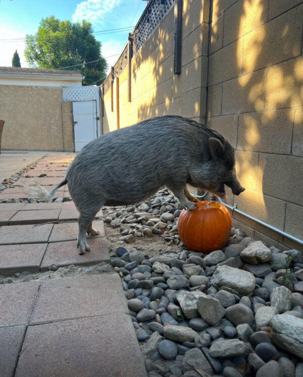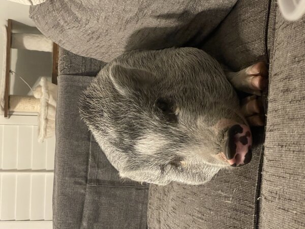 1/16/2026 Still available! Sylvia is a gorgeous house piggy in need of a new home due to an upcoming move. She is good with people of all ages and has been around kids. She currently lives with a dog and two cats, and she gets along with them well. (Dogs and pigs should always be supervised and never left alone when together.) She is housebroken, harness trained, and knows sit and spin. She's not spayed, but is current on routine vet care.