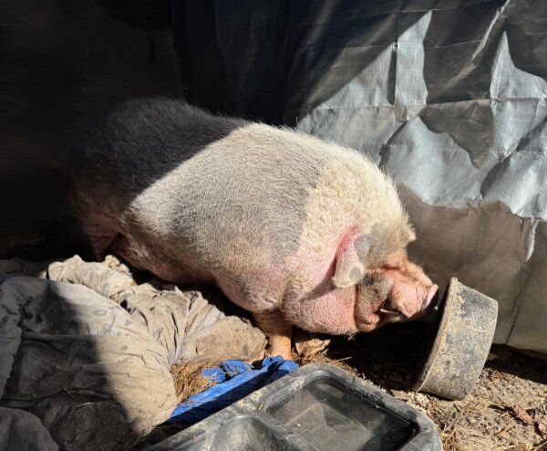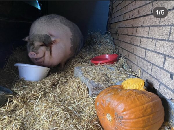 3/11/25 Still Available! Three new photos added! Tater is a neutered male who has lived indoors before, but now lives outdoors primarily. Tater is a very calm and laid-back pig. He can get skittish in high stress situations like moving. There are 2 dogs in the home that he does well with. (Dogs and pigs should always be supervised and never left alone when together.) Tater is also good with kids and lives with a 3 y/o. He is crate trained.