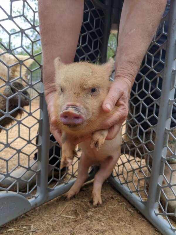Tristan currently lives with many other piglets and mother pigs and is going to need someone very gentle, patient, and kind once she is weaned and ready to be socialized.