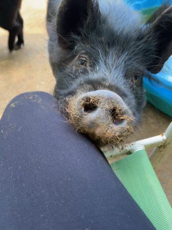 9/8/25: Still available! Waldo, Wilbur and Lucy are three adorable siblings who were rescued from a horrific situation where they had languished until discovered by PETA. They had spent months cramped in a small pen up to their knees in water/slurry. After months of negotiation, the owner released them to PETA and they were brought into our care. They are fully vetted and healthy and are now looking for their forever family to find out just how adorable they are! We would LOVE them to go together as a little family unit. I have included photos of how they were found!