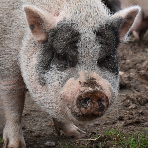 Wendal and Walter came in together and have lived most of their lives together. There is a chance that they are brothers but we cannot confirm that. Wendal is actually white with some large black spots but he loves staying cool in the mud, so getting a good 'pigture' isn't always easy. These boys are curious about receiving attention but are a little shy. They would like to find a home together.