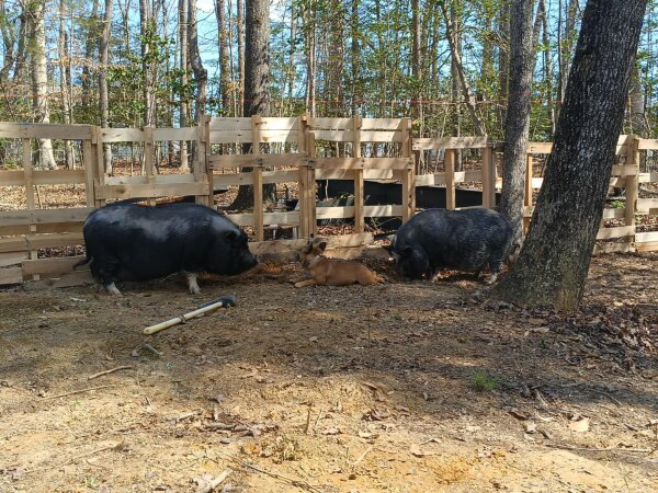 Wilbert and Summer are brother and sister. They are bonded and have never been apart, so a home where they can stay together is needed. Their mom said they are angels and don't cause any problems. They're only being rehomed because the county codes require more land for pigs. Both pigs are good with other animals and children. (Dogs and pigs should always be supervised and never left alone when together.) They are a sweet outdoor pair who would make a great family addition.