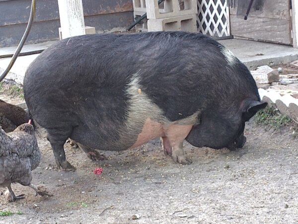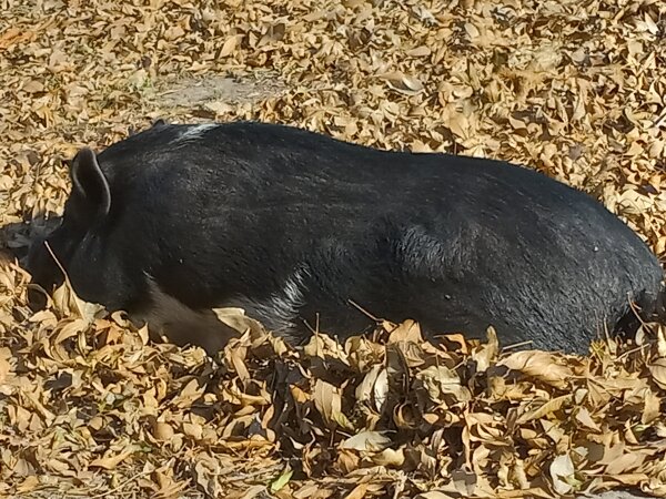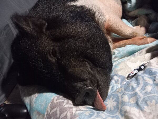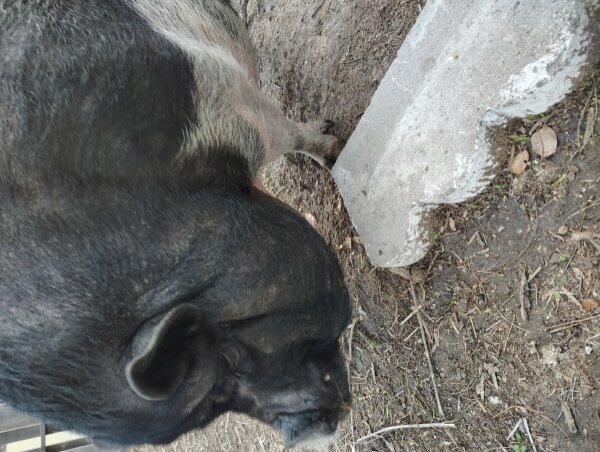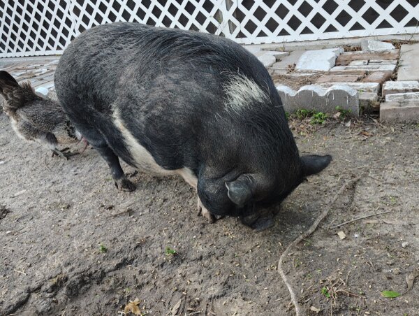 Wilbur is a gorgeous girl (yes, girl!) in need of a home before her mom moves where she'll receive proper care. She hasn't been around kid before, but does ok with and is curious around small animals. She is NOT good with large dogs, though, and will actively try to bite them. (Dogs and pigs should always be supervised and never left alone when together.)