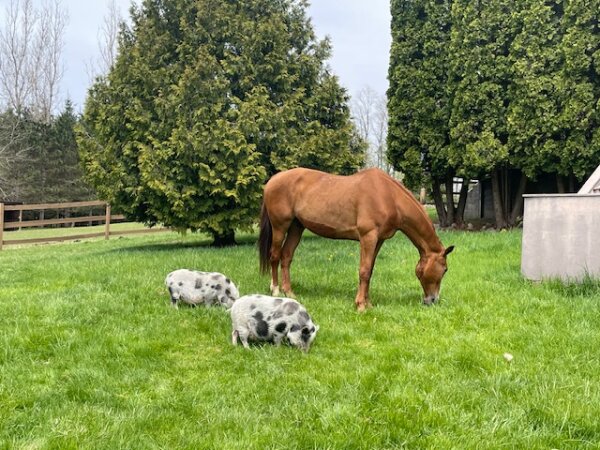 Willie and Earle were taken in 3 years ago from someone who couldn't keep them, and unfortunately, the current family will be moving to a small condo in the city and unable to bring them. They are good boys who have done well around older teens and with other animals they met, like cats & dogs. (Dogs and pigs should always be supervised and never left alone when together.) Willie and Earle are outdoor pigs and they are both neutered males.