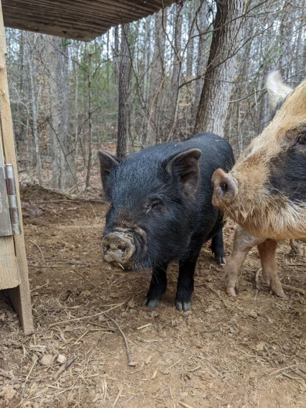 Pigs are happiest with companion pigs, so it is our preference that Xander is adopted with a fellow herd mate or goes to a home where he will have another pig to live with.